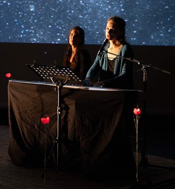 Deux passeuses de voix sur scène : l’une pour chanter, accompagnée d’un piano ou d’une guitare, l’autre pour dire les mots choisis de quelques chantres de l’espoir et, ainsi, évoquer, laisser ré[ai]sonner des résistances, donner corps à des témoignages, des pensées sensibles autour de la Seconde Guerre Mondiale et d’autres conflits.
